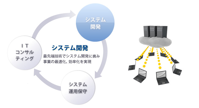 弊社のシステム開発・運用部門では、お客様より「こんなことを実現できないか?」「この業務を電子化できないか?」などのご要望を頂いた後、直ちにプロジェクトチームを立ち上げ、解決方法の調査・ソフトウェアの設計・プログラミング・動作試験まで、一連の作業に責任を持って遂行いたします。業務効率・コンバージョンの向上など、お客様の目的に合ったシステムを開発できる技術スキルを持っていますので、多種多彩のご提案が可能です。